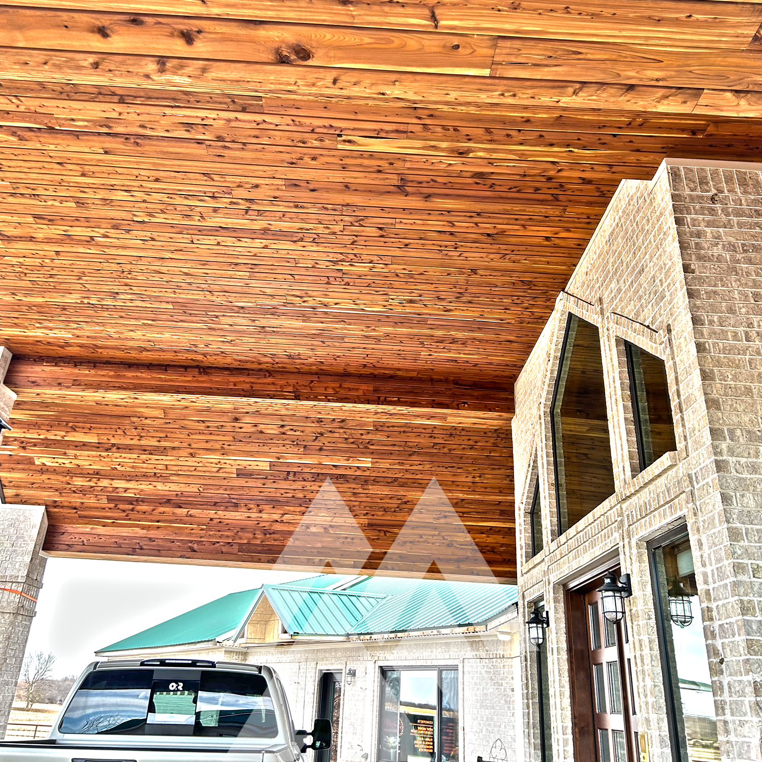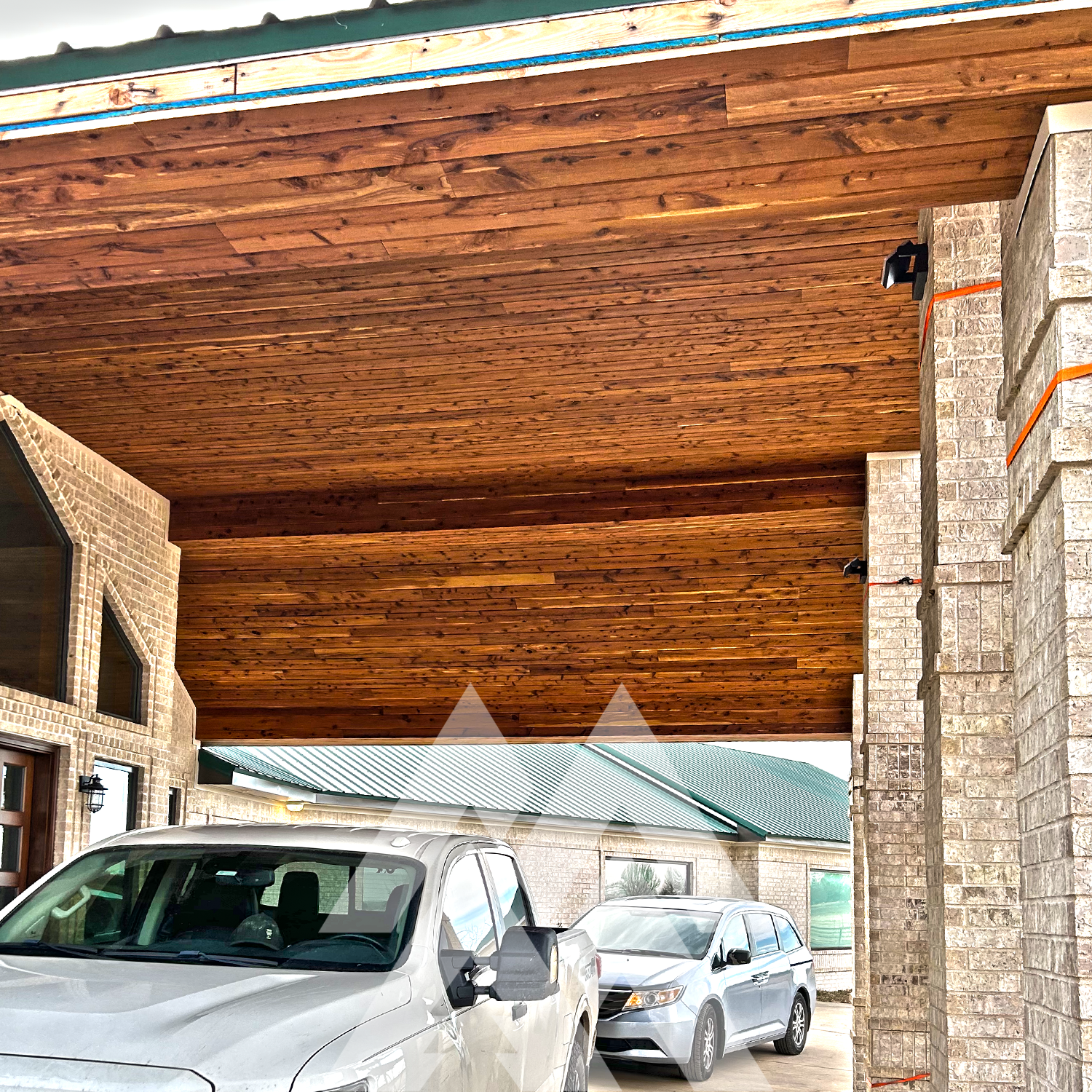 Jimmy & Mary Gordon’s carport project in Owasso, Oklahoma, represents a perfect fusion of functionality and style, completed in 2023. The structure is expertly crafted using ¾ inch Tongue & Groove panels, providing a seamless and polished look. To protect the rich texture and enhance the natural beauty of the wood, TimberPro UV Madrone Stain was applied, offering durability against the elements and a luxurious finish. This carport not only serves as a practical shelter for vehicles but also adds an elegant architectural element to the property, showcasing the Gordons’ commitment to quality and aesthetic appeal.